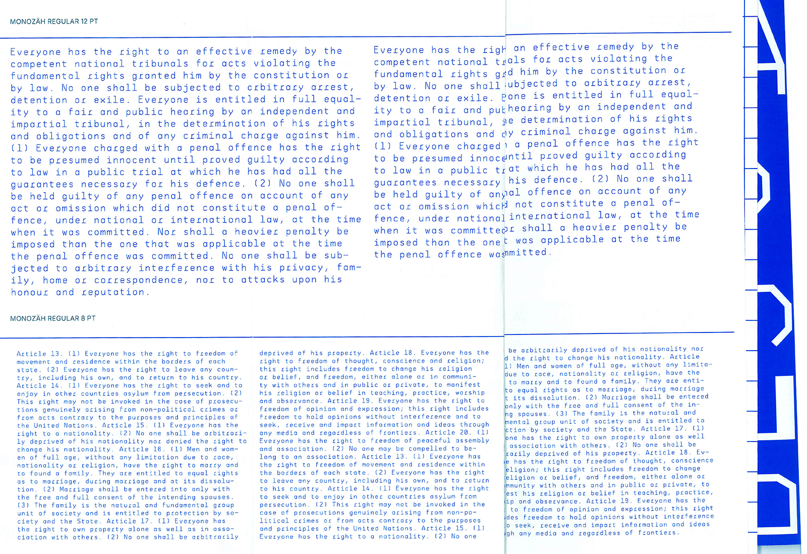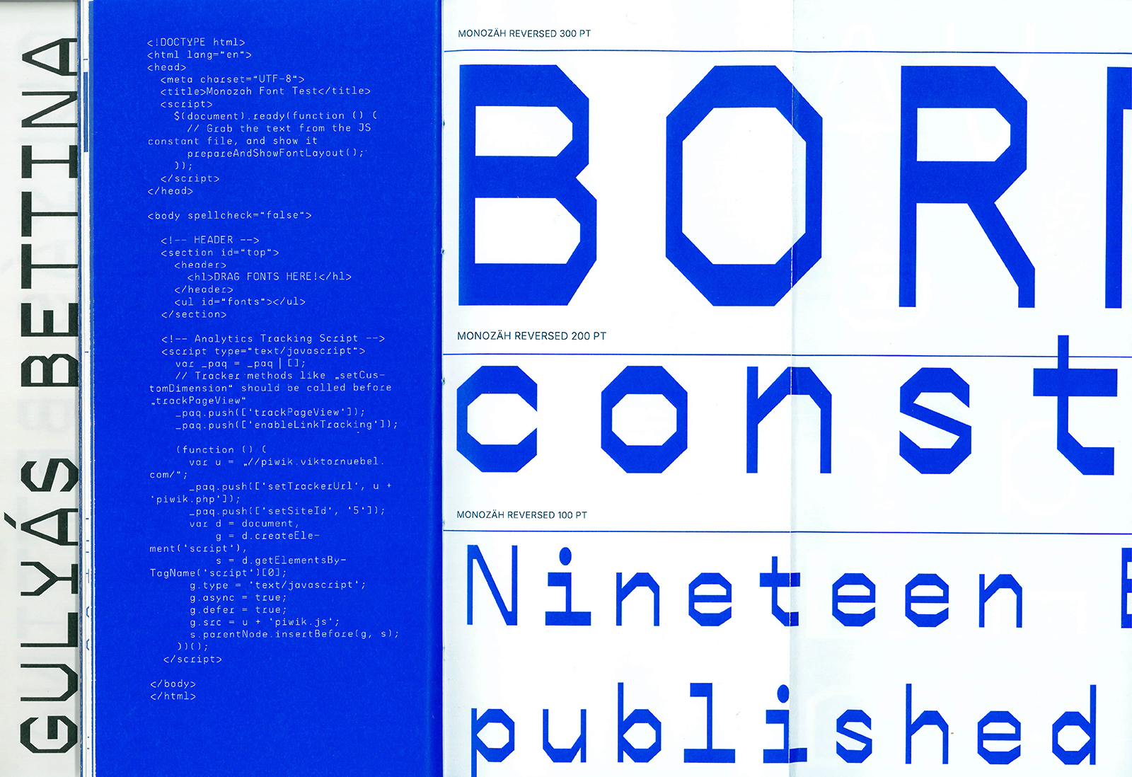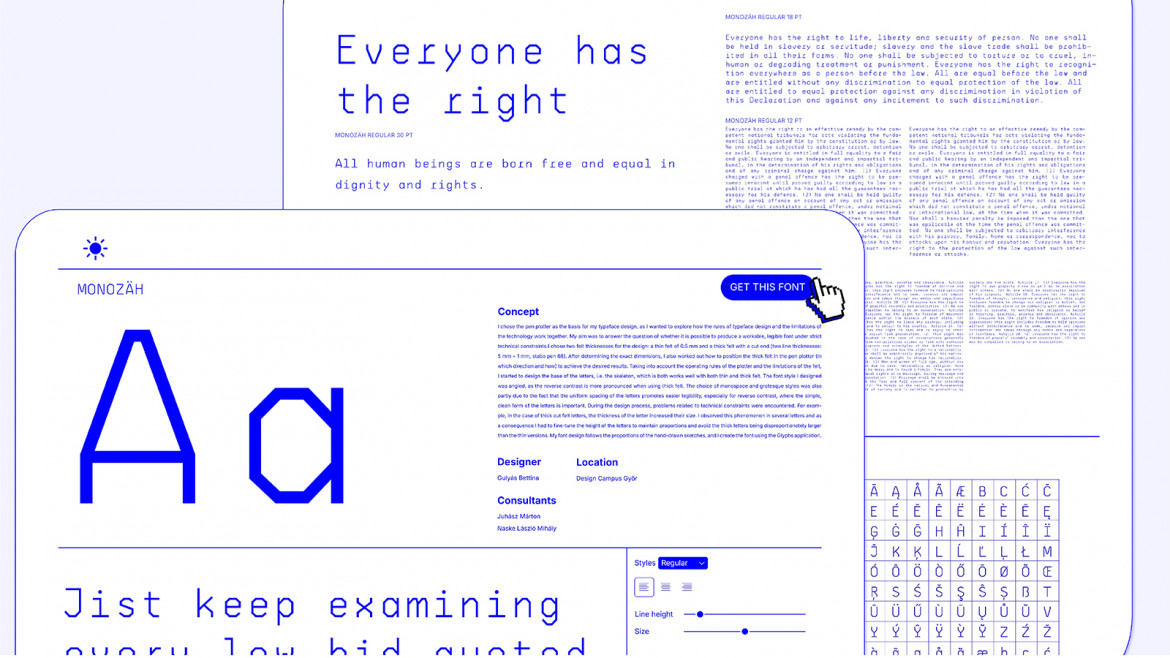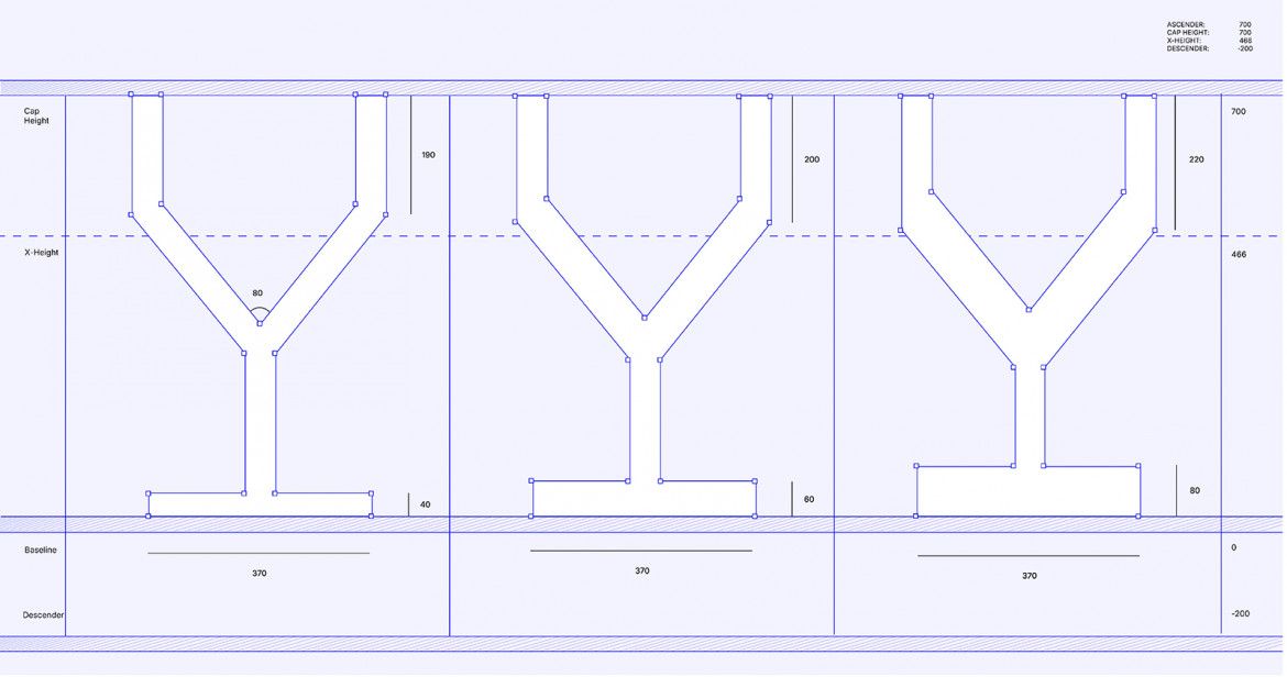 Projekt kroju pisma opiera się na wykorzystaniu plotera piórowego CNC w celu zbadania relacji między zasadami projektowania typografii a ograniczeniami narzuconymi przez technologię. Głównym założeniem było sprawdzenie, czy możliwe jest stworzenie funkcjonalnego i czytelnego kroju pisma w ramach takich ograniczeń technicznych. W trakcie procesu projektowego zastosowano dwa typy markerów: cienki pisak filcowy oraz gruby marker ze ściętą końcówką. Po określeniu dokładnych wymiarów autorka opracowała metodę pozycjonowania grubego markera w ploterze. Projektowanie rozpoczęło się od strukturalnych podstaw liter, czyli ich szkieletu. Powstały styl pisma przybrał formę kanciastą, ponieważ użycie grubego, ściętego markera silniej podkreśla efekt odwróconego kontrastu. Decyzja o pracy z czcionkami typu monospaced i groteska była częściowo podyktowana ich równym światłem międzyliterowym, które zwiększa czytelność. Ostateczna koncepcja kroju pisma zachowuje proporcje autorskich szkiców odręcznych, a cyfrowa wersja kroju rozwijana jest w aplikacji Glyphs.