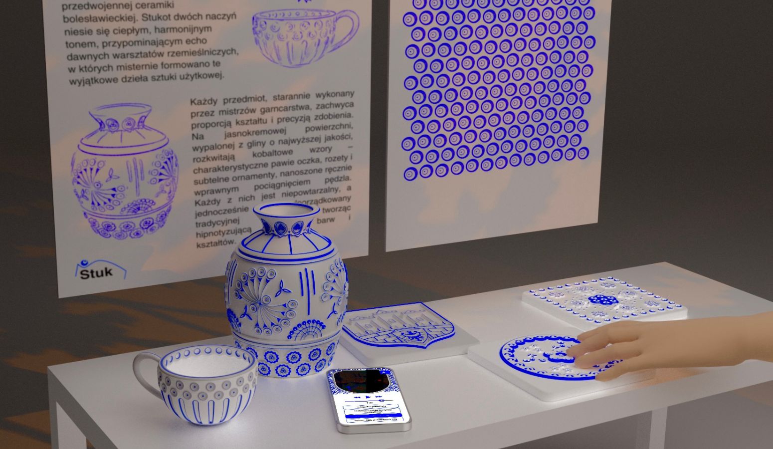 Celem pracy było stworzenie projektu, który otwiera świat kultury przed osobami niewidomymi i słabowidzącymi – pozwala im nie tylko „zobaczyć”, ale przede wszystkim poczuć dziedzictwo Bolesławca. Inicjatywa przełamuje bariery pomiędzy sztuką a zmysłami. Przekształca wizualne elementy historii miasta w formy dotykowe i dźwiękowe, dzięki czemu każdy, niezależnie od stopnia widzenia, może doświadczyć jego kultury. Inspiracjami były zarówno potrzeba społeczna, jak i obserwacja dobrych praktyk w innych polskich muzeach. Kluczowym elementem procesu stała się współpraca z osobami niewidomymi i słabowidzącymi, które podzieliły się swoimi doświadczeniami i oczekiwaniami. Ich głos stanowił drogowskaz na każdym etapie projektu. Niezwykle ważna okazała się też kooperacja z Muzeum Ceramiki w Bolesławcu, które wsparło projekt merytorycznie i kulturowo, otwierając przestrzeń dla innowacji. W efekcie powstała koncepcja, która łączy technologię, projektowanie i empatię. To nie tylko alternatywny sposób prezentowania dziedzictwa, ale też sposób na uczynienie go naprawdę wspólnym.