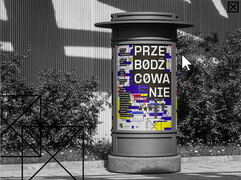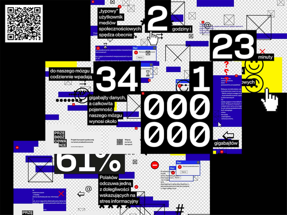 Artystka analizuje wybrane zjawiska psychologiczne i projektowe, aby pokazać, w jaki sposób projektowanie oddziałuje na społeczeństwo. Zwieńczeniem badań jest autorski projekt kampanii. Inspiracją stały się osobiste doświadczenia: funkcjonowanie w zatłoczonych, głośnych przestrzeniach, nadmiar bodźców wizualnych i informacyjnych w mieście i internecie oraz przeciążenie sprzętu podczas pracy projektowej. Możliwość eksperymentowania z formą pozwoliła wizualnie oddać przesyt i nagromadzenie bodźców oraz ich wpływ na zmysły i psychikę.