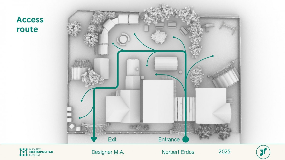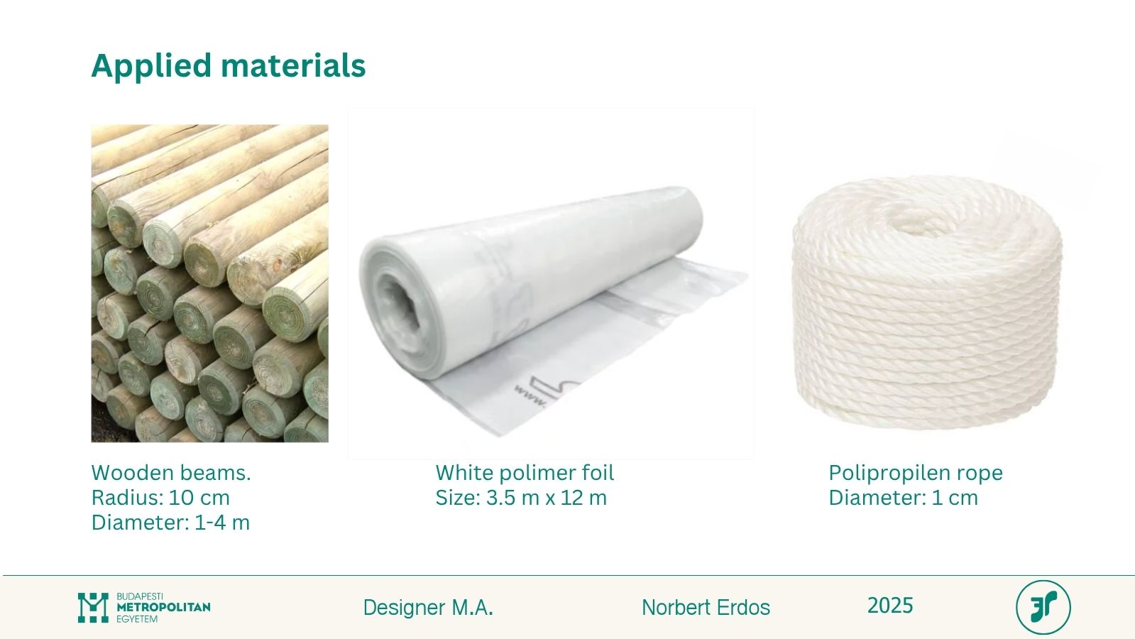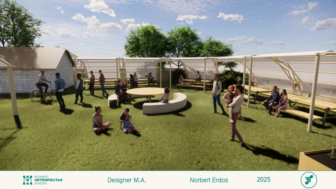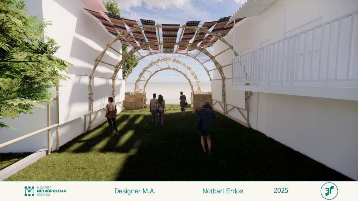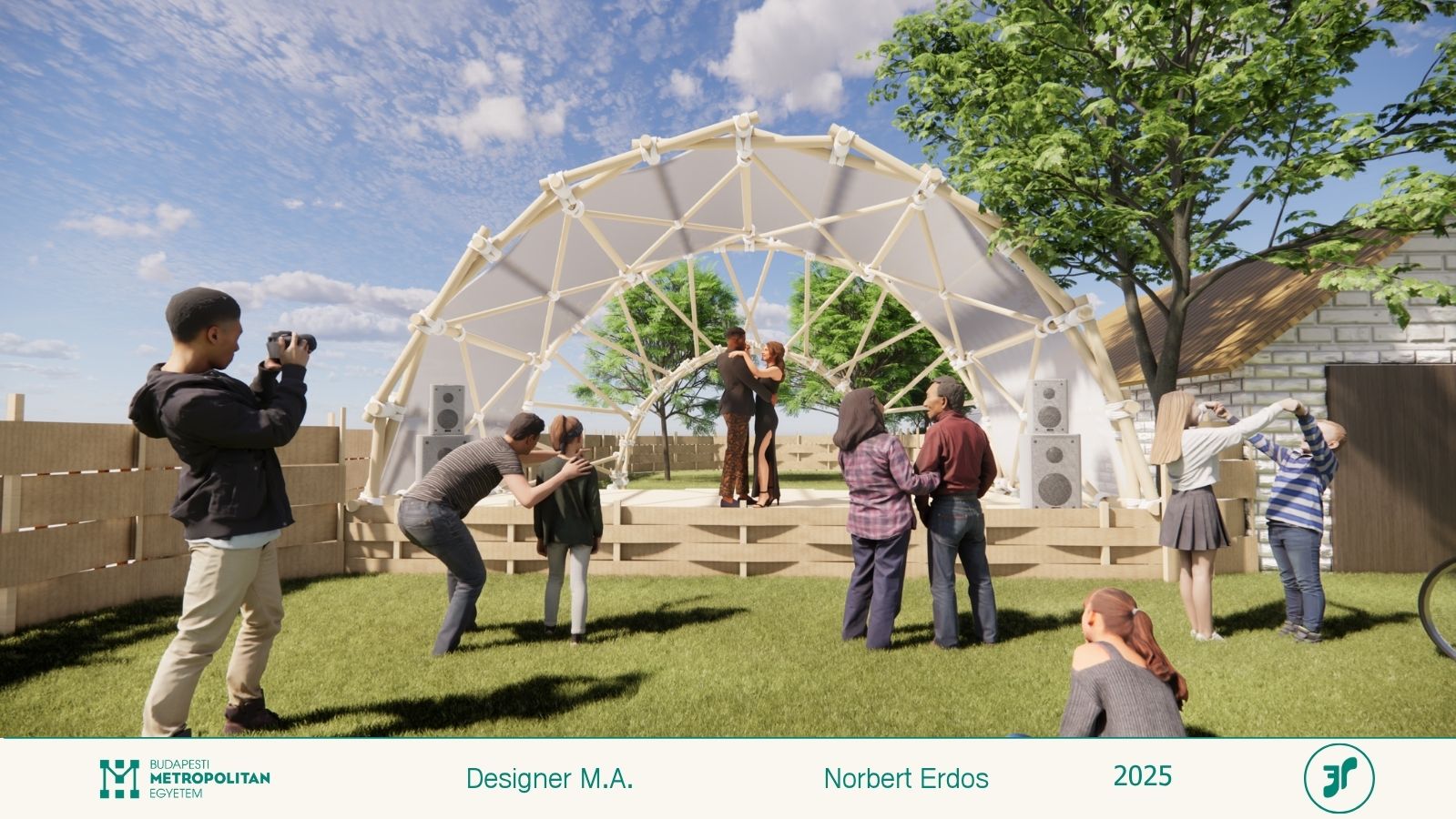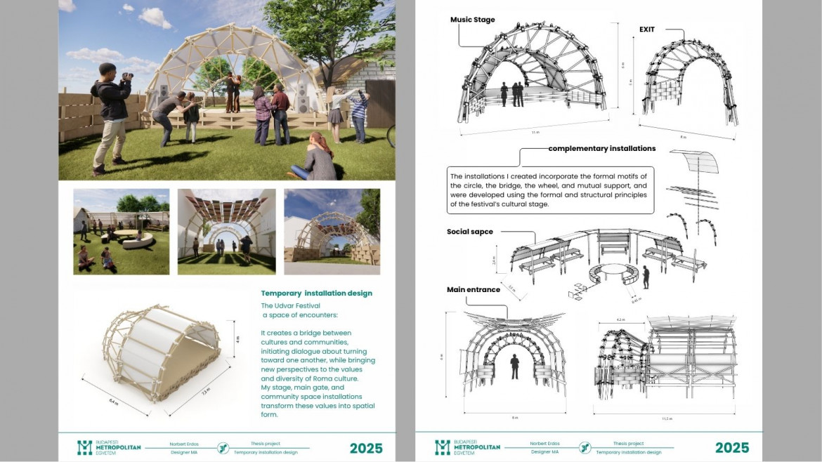 Praca skupia się na projektowaniu tymczasowych instalacji wielokrotnego użytku na potrzeby Festiwalu Udvar na Węgrzech. Celem projektu jest zaangażowanie lokalnej społeczności romskiej oraz promowanie wartości płynących ze współpracy, przynależności i odpowiedzialności zbiorowej. Instalacje są oparte na modułowym systemie strukturalnym, który pozwala na ponowne użycie elementów po zakończeniu Festiwalu. Można je przekształcić w rabaty kwiatowe, struktura dachowa sceny może służyć jako zbiornik wody deszczowej, z kolei elementy osłony przed słońcem w miejscach publicznych mogą zostać wykorzystane przy schowkach lub hakach na rowery. Takie podejście zapewnia obiegowe użycie materiałów oraz zwiększenie pozytywnego wpływu samego wydarzenia na środowisko naturalne i społeczeństwo.